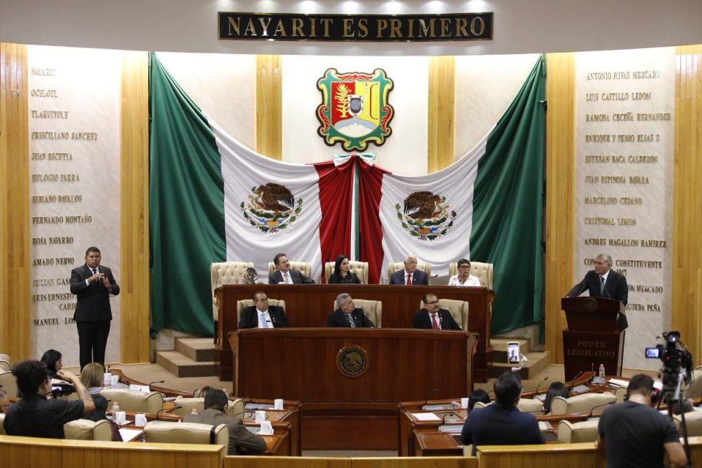 Tepic, 26 de octubre de 2022.- Bajo un diálogo respetuoso y en el marco de su gira por los 32 Congresos Locales del país, en Sesión Pública Solemne, la 33 Legislatura que preside la diputada Alba Cristal Espinoza Peña, recibió al secretario de Gobernación, Adán Augusto López Hernández para informar sobre la reforma a la constitución en materia de Guardia Nacional ante las y los legisladores.