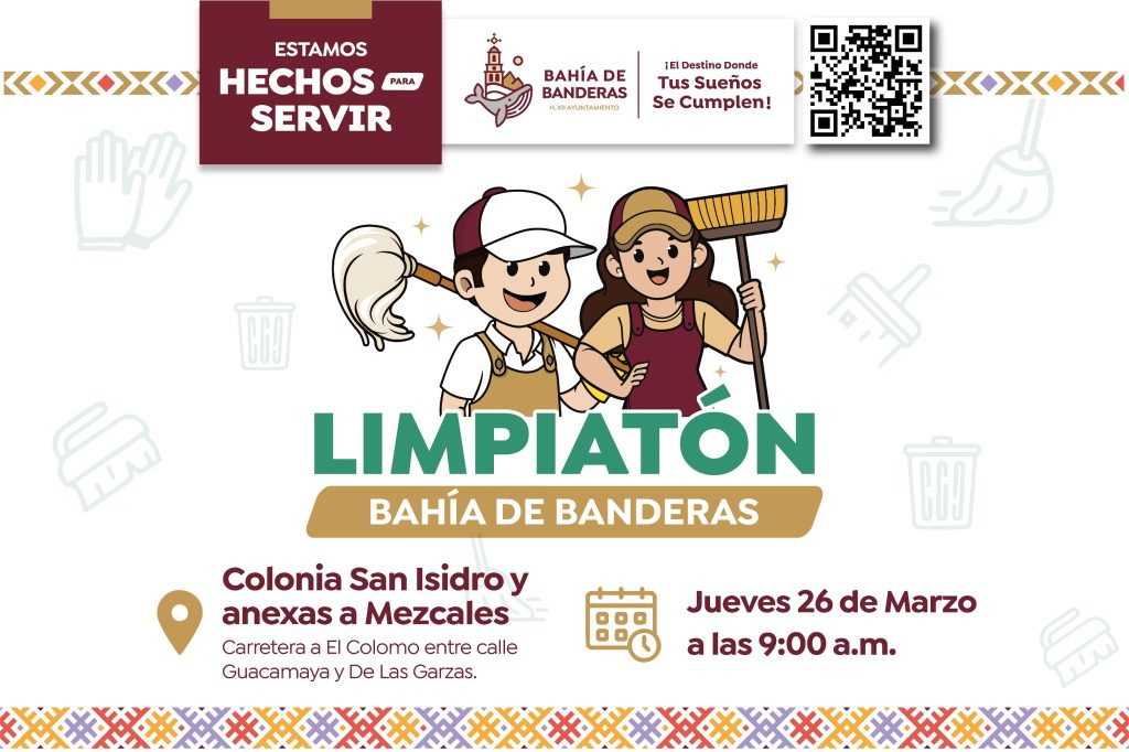 Con el objetivo de fortalecer las acciones de limpieza y prevenir enfermedades, el Gobierno Municipal de Bahía de Banderas, llevará a cabo una nueva jornada del programa Limpiatón este próximo jueves 26 de marzo en la colonia San Isidro y zonas anexas a Mezcales.