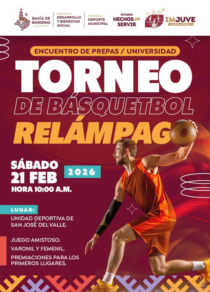 Bahía de Banderas se prepara para vivir la emoción del Torneo de Básquetbol Relámpago entre preparatorias y universidades.